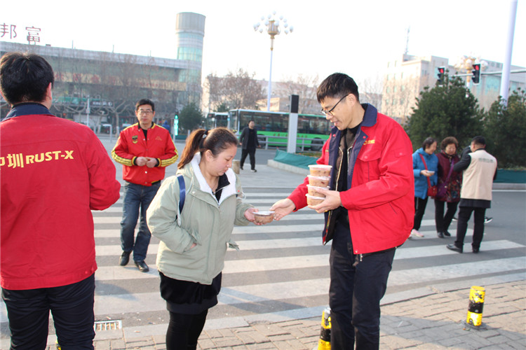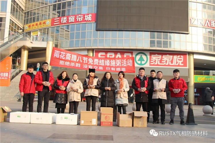 承繼著往年的優(yōu)良傳統(tǒng),今年的臘八節(jié)當(dāng)天,中圳德興(北京)防銹材料有限公司牽手雨花齋全體員工一如既往地向環(huán)衛(wèi)工人及老人、兒童、殘疾人免費(fèi)派發(fā)臘八粥,在寒冷的冬日為大家送去溫暖的新年祝福,讓更多人感受到溫暖的力量,也希望以實(shí)際行動(dòng)號(hào)召更多的人一起為社會(huì)及周邊的人帶去一份愛的關(guān)懷和鼓勵(lì)。